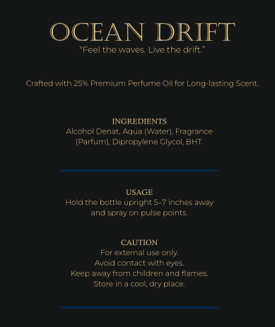 Dive into a wave of freshness with Ocean Drift, a bold and refreshing scent for men who love to stand out. Encased in a sleek 50ml bottle, this fragrance blends crisp marine notes, a splash of citrus, and subtle musk to create an invigorating experience. Whether it’s a day at work or a night out, Ocean Drift (50ml) is your go-to companion for lasting confidence.